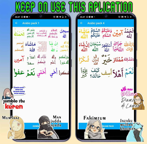 Immediately download the WhatsApp Sticker Application now and DO NOT forget to give a rating (☆☆☆☆☆) and your comments on our application and recommend the New Islamic Muslim WASticker for WhatsApp application that Collection contains Islam, Muslim, Islamic, Muslimah, Arabic, Arabic text for friends, relatives and family.