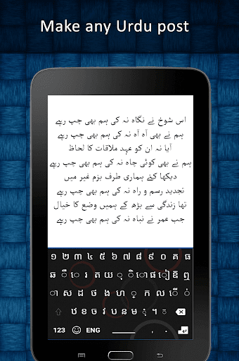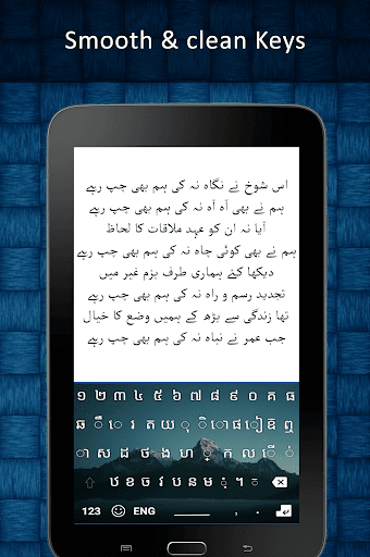 You can write all Khmer letters and words very fast and easily because the interface of this nastaleeq keyboard is user friendly. Suggestions are displayed for word completion and automatic next word prediction. Language Change symbol keyboard from Khmer to English and English to Khmer.