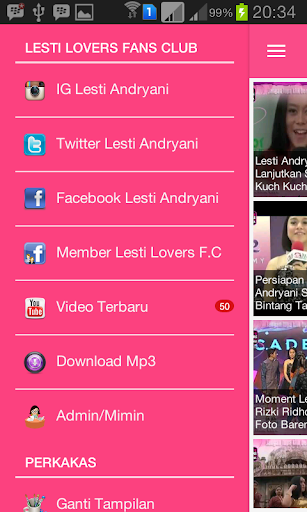 Aplikasi Diary Lesti Lovers Fans Club ini adalah sebuah aplikasi khusus android yang berisi berbagai konten seputar informasi dari aktivitas dan akun sosial media resmi Lesti Andryani juga video yang selalu update untuk anda tonton setiap saat dimana pun anda berada. semoga dengan adanya aplikasi ini bisa bermanfaat bagi semua lesti lovers di seluruh dunia dan alam semesta yang indah ini.