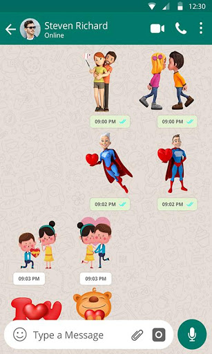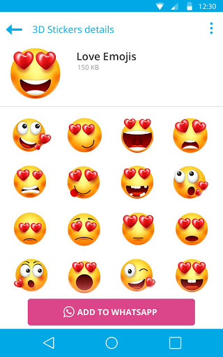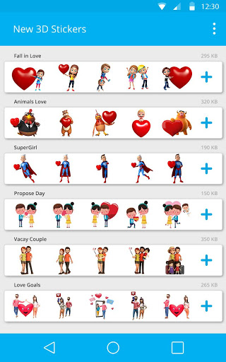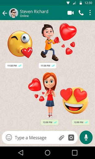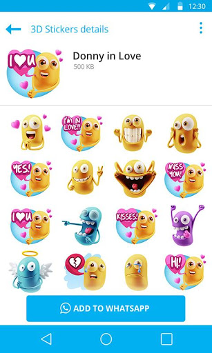 Over 500 love stickers in multiple categories of free stickers for whatsapp in form of romantic love story, love emoticons etc which you can share via 3D Romantic Stickers for whatsapp: WAStickerApps: