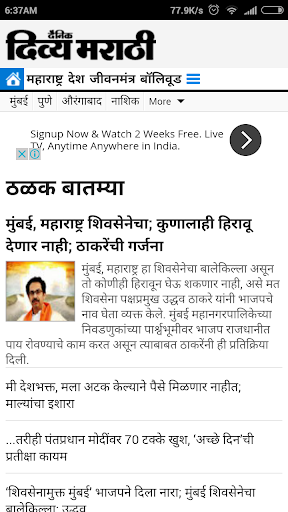 One app to read all your favorite Marathi News Papers like Divya Marathi, Prahaar along with Loksatta, Lokmat and also Pudhari &Beedi Reporter.