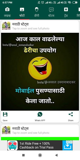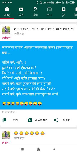 Marathi Status having following categories jokes and status