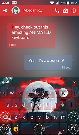 The custom keyboard design with animated graphics is a great match for the cool live wallpaper. This keyboard makes writing fun with rich communication features. First, you have an amazing design of your choice for visual delight. Customize along with fonts, vivid colors and funny sounds just the way you like it. Over 800 emojis are available to express emotions easily using the colorful keyboard background. If you are a GIF fan, you’ll love the collection linked to Wave Animated Keyboard. Plus you can create an instant GIF to reveal your thoughts. On top of good looks and fun ways to communicate, Wave Animated Keyboard offers some smart writing tools. The auto-correct feature supports over 20 languages. Your hands are free to do something you enjoy more than writing using the voice input option: