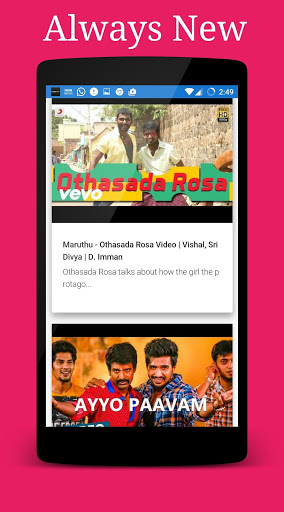 If you are a die-hard fan of Tamil music, you must have this app. Enjoy the best video songs in HD quality.