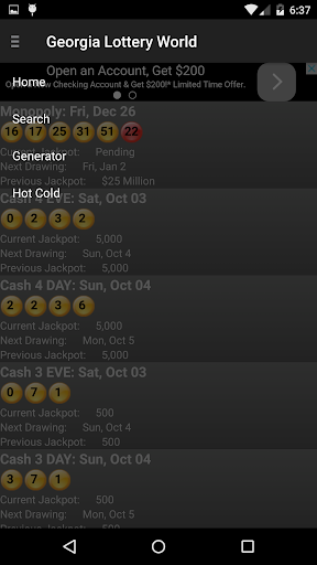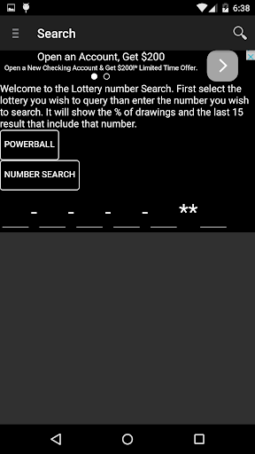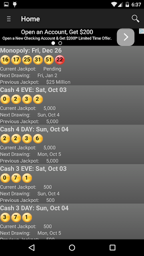 Provides real time North Carolina Lottery numbers. Includes Megamillions, Powerball Lottery Jackpot Estimates. It has a random lottery number generator. The random number generator has presets and a custom slot Look up previous drawings by tapping the listing. It has a lottery number search. Once you pick the type of lottery you can search for last time that number was drawn