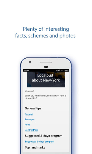 “Information” section contains textual information where you'll find a suggested three days visit plan, some general advice and also tips regarding landmarks and sightseeings mentioned in the guide.