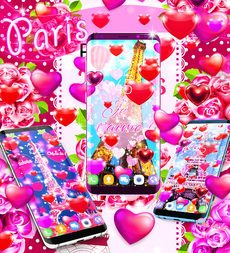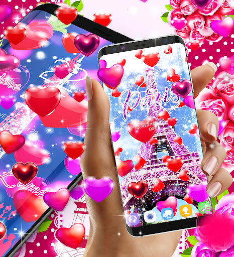 Romantic wallpapers from paris and cute animations. Hearts will fall over the screen. You can choose what color of the hearts that drop.