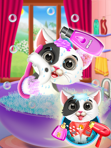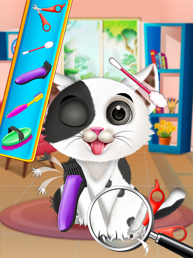 Let's welcome a newborn cute kitty and have fun playing daycare games. Play with such a beautiful and fluffy kitty. One can learn all pet care treatment. Little kitty cat needs your help! Let us handle her madness at our animal pet care center.