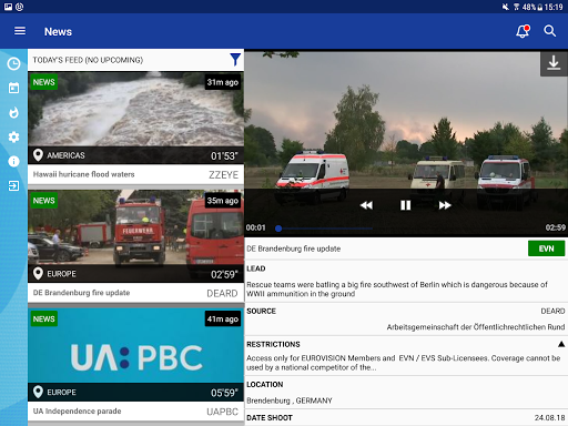 Note: This is not a mobile news application open to the public. This application is part of the Eurovision News Exchange service to its members. You must be a verified active user of the News Exchange, using your company's e-mail to log-in.