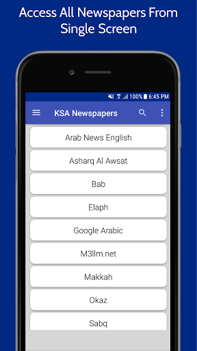 Read latest news from more than 55 Saudi Arabia newspapers with an easy and uninterruptible view. There are options for sharing the news with your friends and family using your phone messages or any other relevant social apps. KSA Newspaper networks included are: