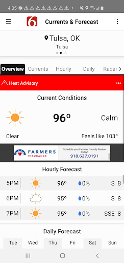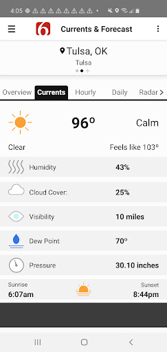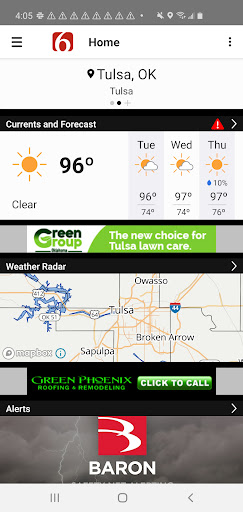Take the News On 6 Weather team wherever you go with the News On 6 Weather app. Get the latest forecasts, radars, alerts, videos, and blogs from the Oklahoma weather experts Travis Meyer and the WARN Team.