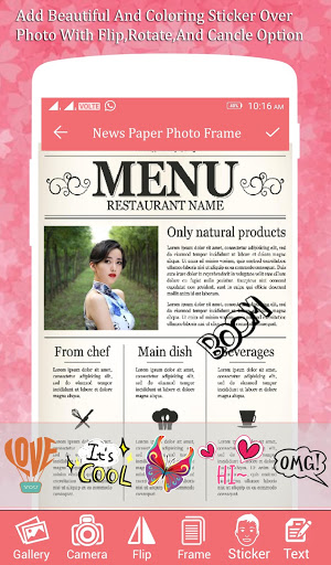 Newspaper Photo Frames app you can make photos more beautiful by decorating them with fantastic free Newspaper Photo Frames, edit text on Newspaper Photo Frames and amazing stickers.