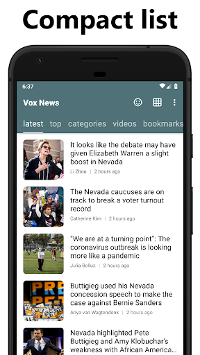 - ability to display stories in list view or grid view;