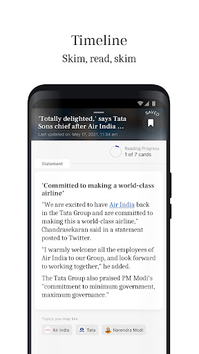 These crisp, timeline-based articles contain only facts and no opinions. They help you stay informed and make informed decisions in your day-to-day life. All you need to do is spend 8 minutes on the app every day.