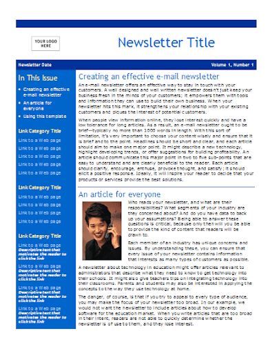These newsletter templates can help you provide a consistent appearance and have easy-to-edit layouts. And remember, you can still send them as email attachments in addition to printing them.