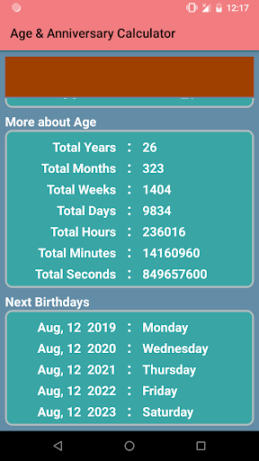 You can see how many days are remaining for your next birthday and on which day of week it would be.
