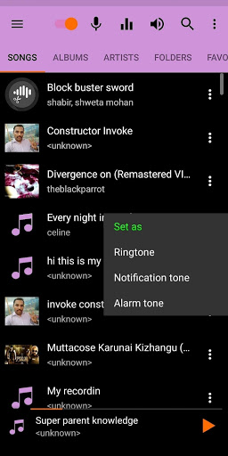 this functionality is blindly list the tracks without any alterations,this is a classic type of method still uses in most of the music players audio players and streaming websites.you can find the vertical three dots image in right corner of the song lists for various track setting process.