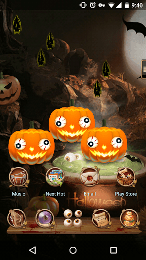 Please install Next Launcher Theme Halloween to get the icons and Next Halloween Pet to get the bats and pumpkins!