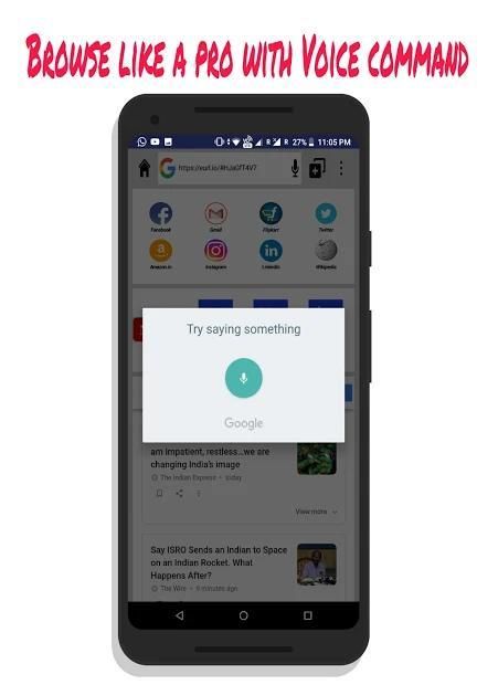 It is the first and only browser in the world to have Voice Assistant. It also comes with very high speed and secured browsing which will give you the ultimate browsing experience. The browser will also give you lots of unique inbuilt features like Webpage loading percentage, Scanner, Voice search, Cache and Cookies clearer, Location clearer along with other common features like Incognito Mode and Desktop mode, Multi tabs, Multiple Search Engine (Google, Bing, Yahoo, DuckDuckGo), history, bookmarks. The browser also comes with language option. The homepage of the browser will also give you many shortcuts for easy browsing. There is also a News section of different categories for you to get updated with the latest happening around the world.