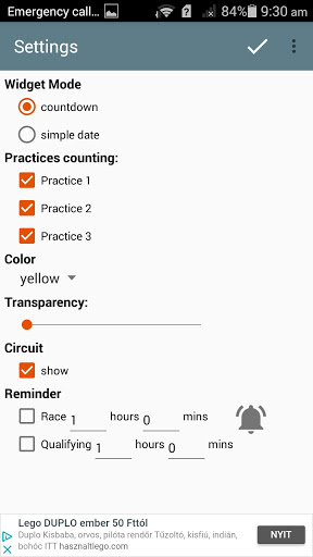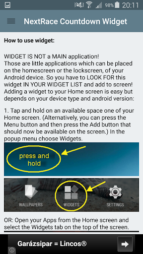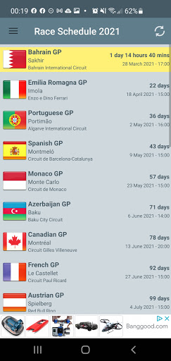 You can add several countdown widgets to your home screen and you can easily customize them at the creation or later by tapping flag icons. If you touch anywhere else in the counters you can see the dates, details and map of the next Race.