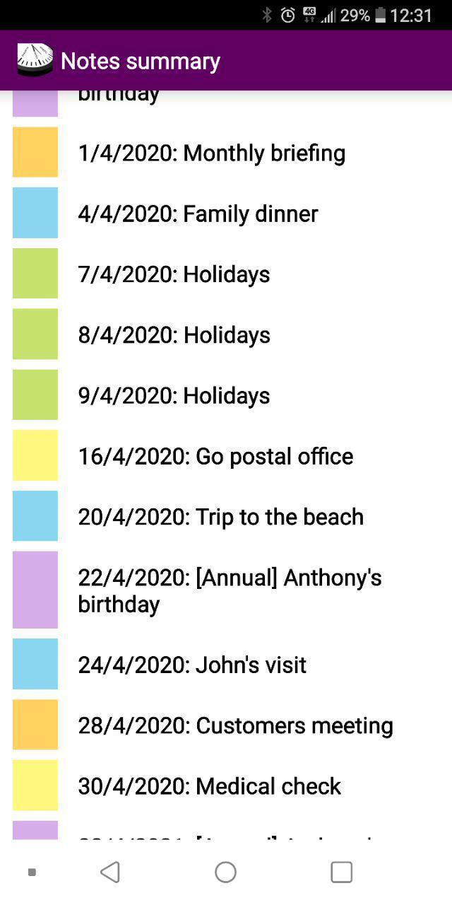 - NOTES SUMMARY. Check a list of every note you wrote in the calendar.