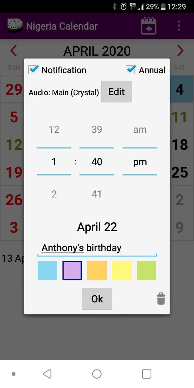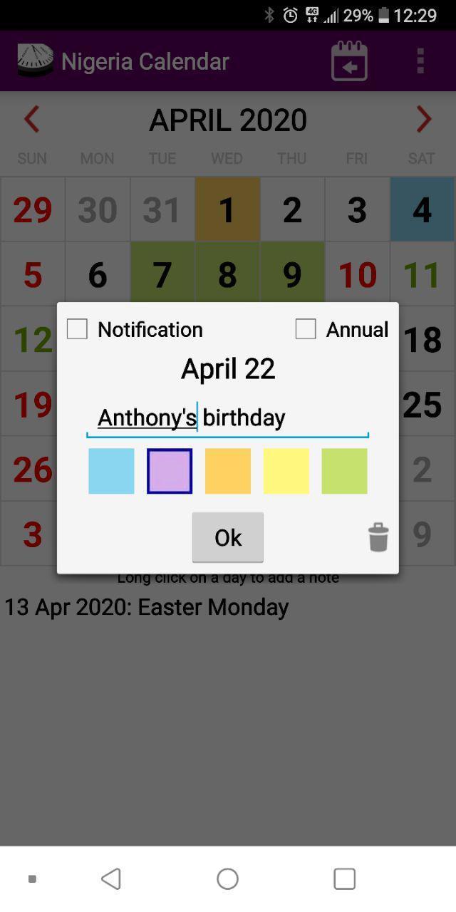- ANNUAL NOTES. Mark birthdays, anniversaries and special dates and they will automatically get marked for every other year. Like with the daily notes, you can identify them with a background color and edit or remove them whenever you need, or even convert them to a daily note.