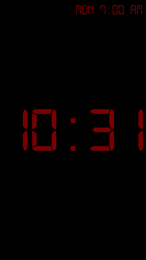 This is a simple, retro-style night clock. It will display the time in big, bold letters (three fonts and any color to choose from), along with having a built-in alarm (or you can use your stock android alarm, it it's supported). Since the screen will stay on while the application is open (unless you manually turn it off), it is highly recommended that you keep your phone plugged in to charge otherwise it will drain the battery.