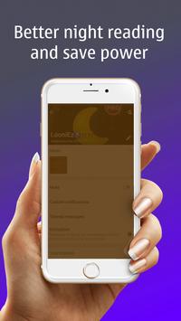 Night Mode - When you have to read by a dim light, the Night Mode prevents your eyes from being irritated by the screen of your device.