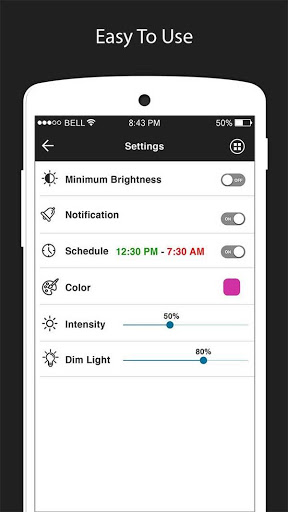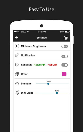 app for adjusting your mobile brightness and night mode. This application is using to reduce light by improving the screen brightness. You can also set solid colors in intensity. By Shifting to night mode, you can relieve your eyes strain, and your eyes will feel at ease during night reading. A feature of a blue light filter will protect your eyes and help you sleep comfortably. By reducing brightness, you can do reading from the phone even at night with lowering the brightness. Schedule Time Option is giving you feature to set automatic brightness. You can also set the intensity and Dim light from 0 to 100%. You can also set this application as a Widget in few steps. This app is also caring for your eyes in night mode adjustment. So Many Features in a single application, you never find like this. Download it today.