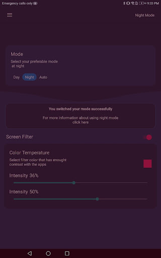 This app help you to activate android night mode on devices that do not provide the night mode option in their system settings.