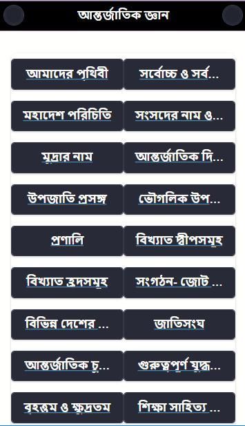 The global context of competitive examinations are a lot of questions. BCS, Medical, candidates for admission to the University of the app (General Knowledge In Global Affairs) has been made. =========================== app has been updated. Yegula new has been added - the capital of the country. - United Nations. - international agreements. - the world's major wars. Here you can study the subject ========================== Bengal; Craving them are: - Brief introduction to the world. - Facts are the world's highest and lowest. - Introduction of the continent. - the national symbol of the country's parliament nama. - ST countries and geographical names. - famous Strait, the lake and the island names. - Many organizations, alliances and our often used yegula Templar name.