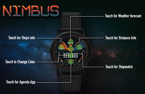 Nimbus Watch Face a is Fully customizable Futuristic Style Wear OS (Android Wear) Watch Face and Clock Live Wallpaper for all Phones.