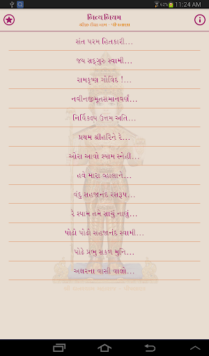 We have collected all Daily "Nitya Niyam" with reading in Gujarati language and listening all in MP3s. All tracks in this application play automatically and do not require manual input to move to next track or previous track. It also works in offline mode which will save your internet usage and can work if you are in no mobile coverage area.