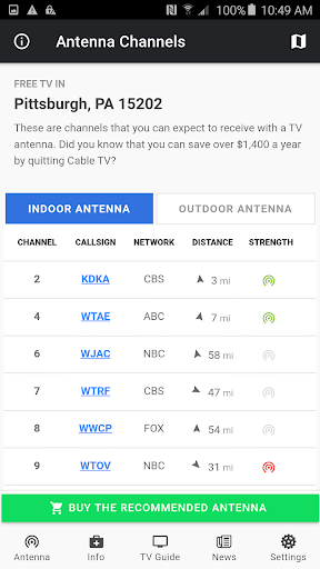 The NoCable app assists you with setting up your over-the-air (OTA) TV antenna and then helps you get the most out of your free broadcast television. NoCable walks you through the purchase, installation and troubleshooting of an over-the-air TV antenna recommended specifically to your home's location!