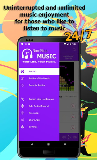Non-Stop Music is a music store for all Music Lovers. As long as you are connected to the internet from your mobile phone with Non-Stop Music, you will be able to enjoy music from hundreds of popular radio channels 24/7, with free, unlimited access.