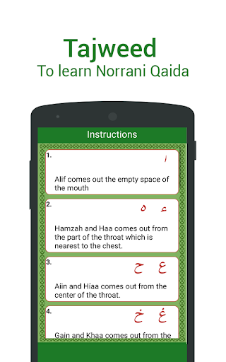 Qaida noorania with sound include chapters for learning from the beginning and complete the Quran step by step chapter wise which have the discussion of universe starting till the completion of Islam and emerging of Islam. Qaida noorania also explain the best examples for humanity. Noorani Qaida with sound maintain the Quran library along with audio player which recite the Quran from the beginning that is noorani Qaida which is the first book for beginner in which Quran reciter repeat the single letter again and again to teach the pronunciation of a single letter then one step upper it teaches how to pronounce it when joining to another letter and making it a word.