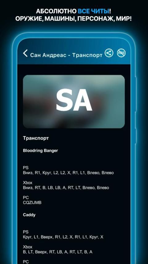 Если вы являетесь фанатом игр ГТА Сан Андреас, вайс сити, 4 и 5 приложение создано для вас. С его помощью у вас всегда будет под рукой коды на ГТА, которые помогут в процессе прохождения.