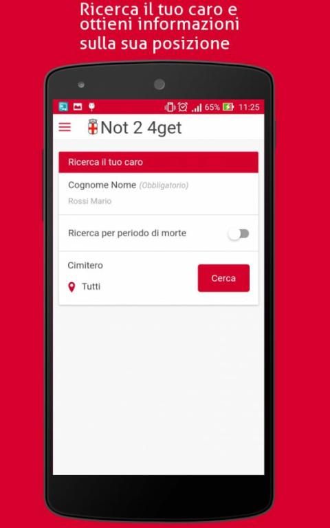 Not 2 4get is the official app of the Municipality of Milan to find the position of the deceased buried in the city's cemeteries.