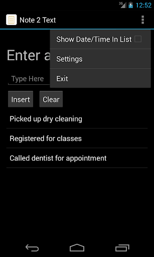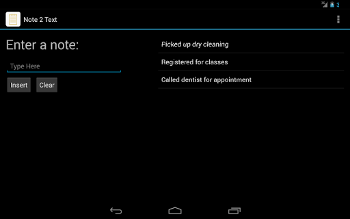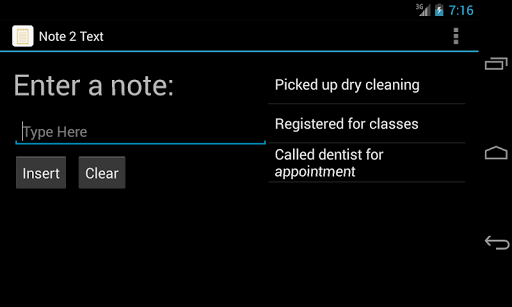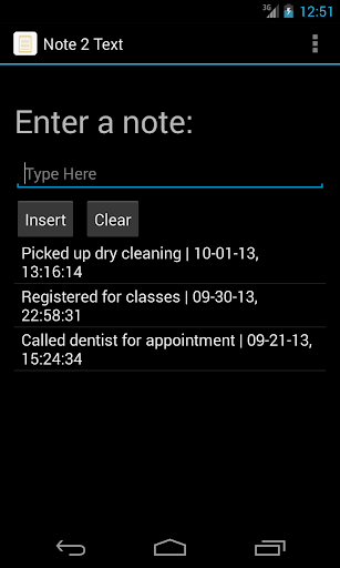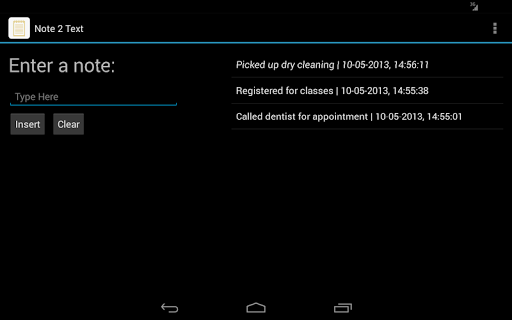 Note 2 Text Free is a simple note taking application that takes your short notes, timestamps them, and adds them to a text file that can be opened on almost any device or computer for later browsing.