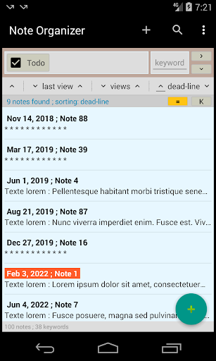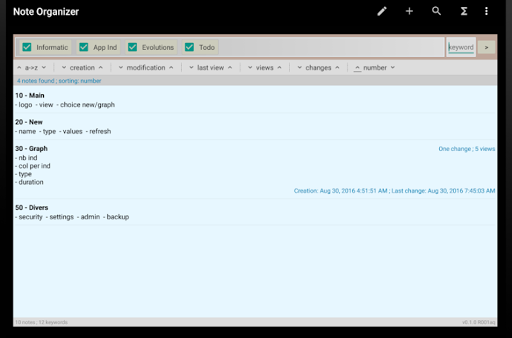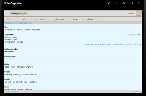 Quickly find each note especially with keywords. Export a group of notes to plain text file. Use the widget to view and quickly access your notes!