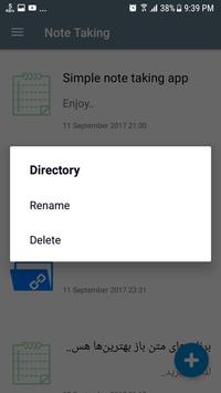 To save and remember your notes. Anyone can organize their notes in a free and simple way with this app. It supports unlimited tree structure to organize notes in directories. You can change the style of your note, such as bold, etc. This app is open sourced and you can find its source in https://gitlab.com/hadilq/NoteTaking