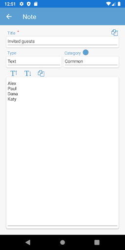 Notepad with notes, checklist, pictures, voice records, birthdays and passwords
