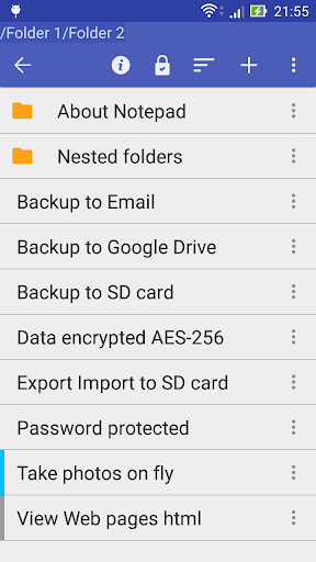 Notepad uses the military grade encryption AES 256 to encrypt your private notes. AES 256 encryption is approved by NSA for keeping top secret files.