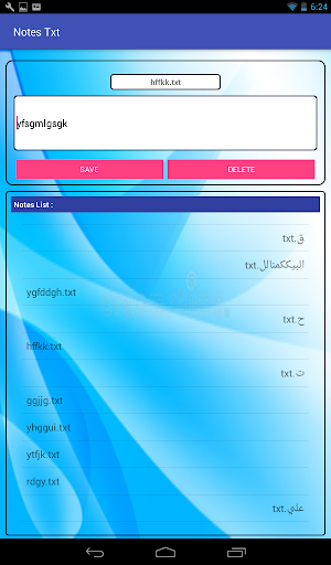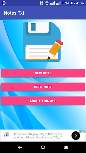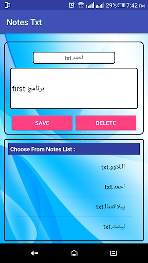 Advantages of this app: 1 - create notes. 2 - Saving your notes in phone storage in folder "Notes Txt". 3 - You can edit and delete them . 4 - You will not lose any data because notes saved in phone memory.