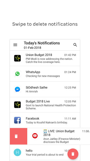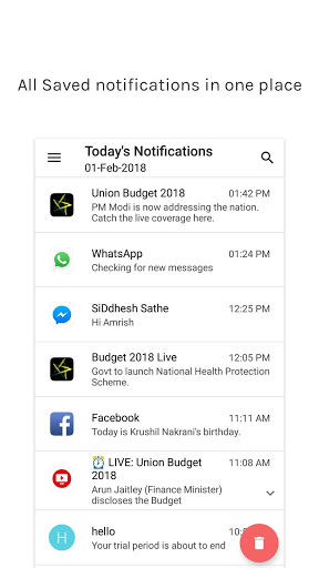 App will save your selected apps notification with details. So whenever you want to see previous notifications you can.