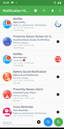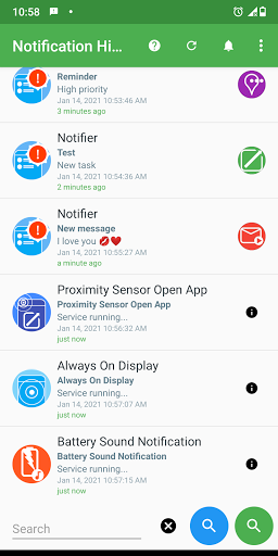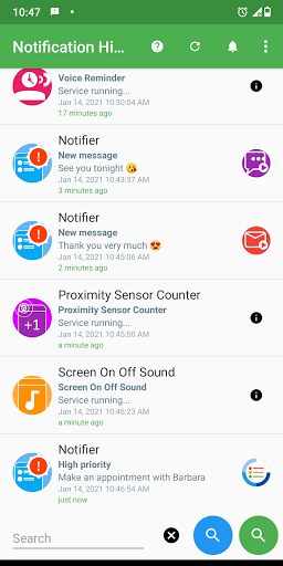 • The application saves the notification history only on your device