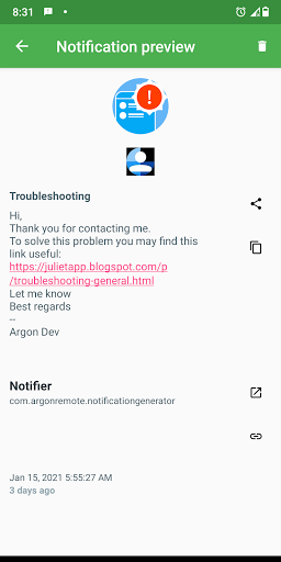 • Ability to share and copy the notification text