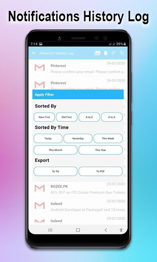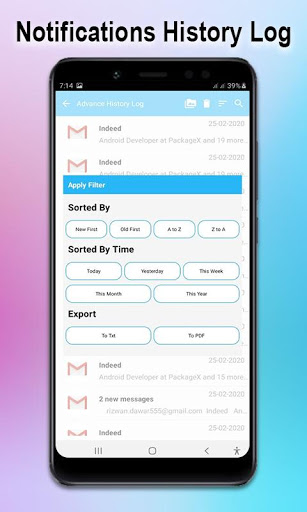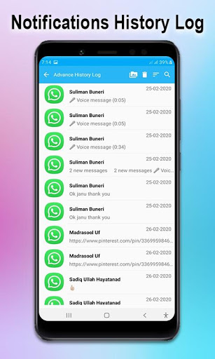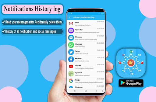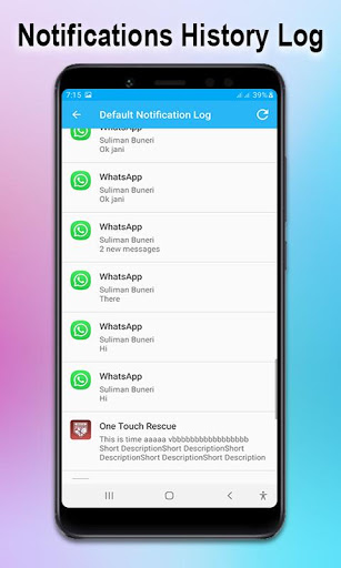 Some time you never check what type of notifications you received in mobile and also there is so many to track all of your notifications history , to simple all this process for you we bring such a nice tool which keep track all your notifications history logs . you can view all the notifications history logs easily in the app. the notifications logs app saved all your notifications.you can view the notifications later . Notification History Log app also help you to read all the messages or notifications without opening particular app. In most of the scenario some time you deleted social msgs or notifications or accidentally deleted msg and notifications then don't worry our notifications history app keep all your messages and notifications so you can read it again .