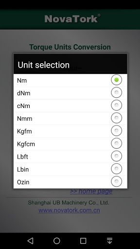 "Torque Units Conversion" is for converting torque values between Nm, dNm, cNm, Nmm, Kgfm, Kgfcm, Lbft, Lbin and Ozin.