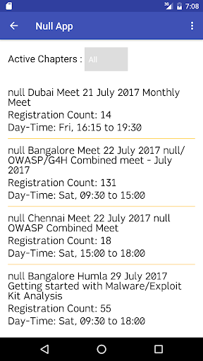 N|U is Open Community for Information Network Security. Its has spread across the globe with multiple active chapters. App would help you find new upcoming events and register for them.